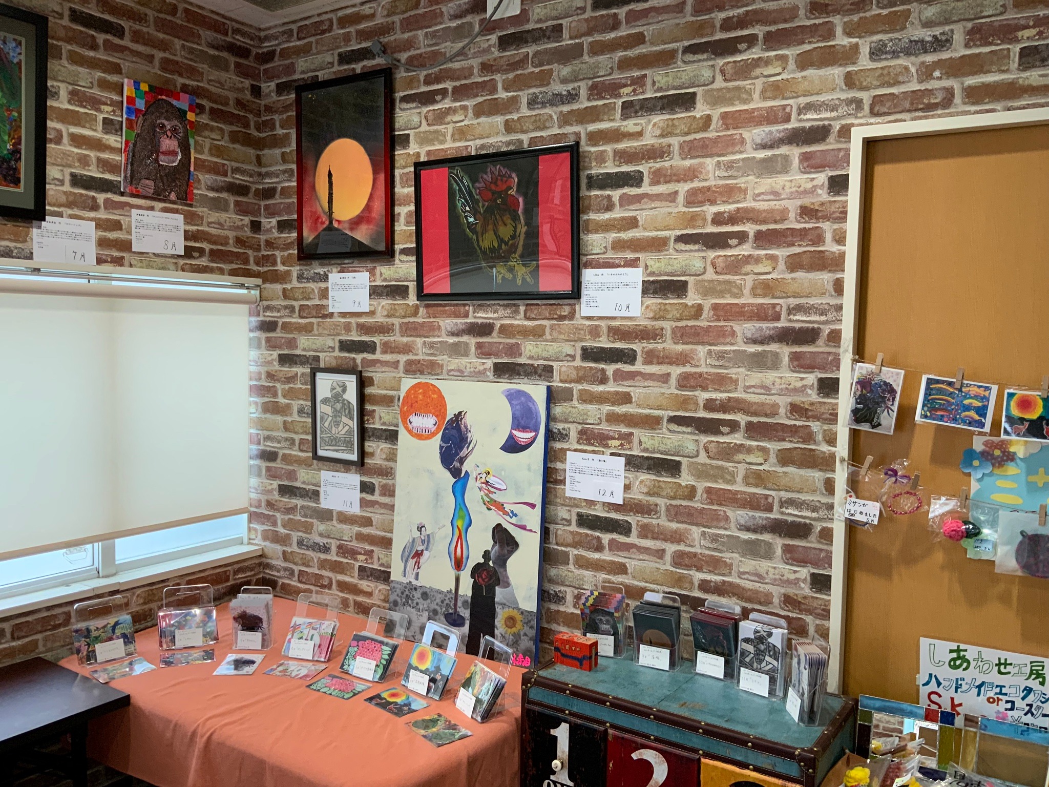 開催場所は奈良市にある多機能事業所てのひらの販売ブースです。てのひらはアートプロジェクトいろとりどりの事務局があり、今回掲載されたアーティストも多数在籍して普段から作品を創作する現場でもあります。